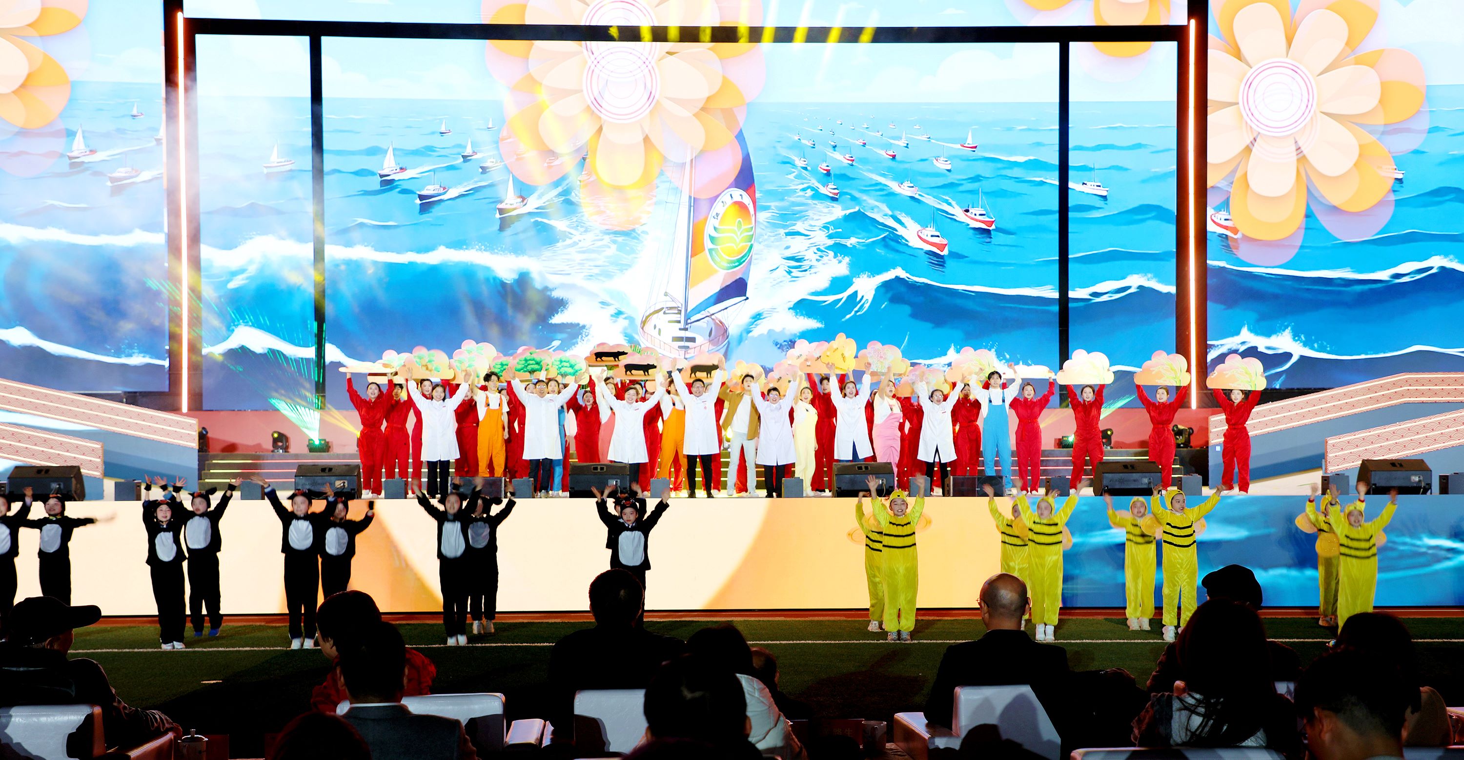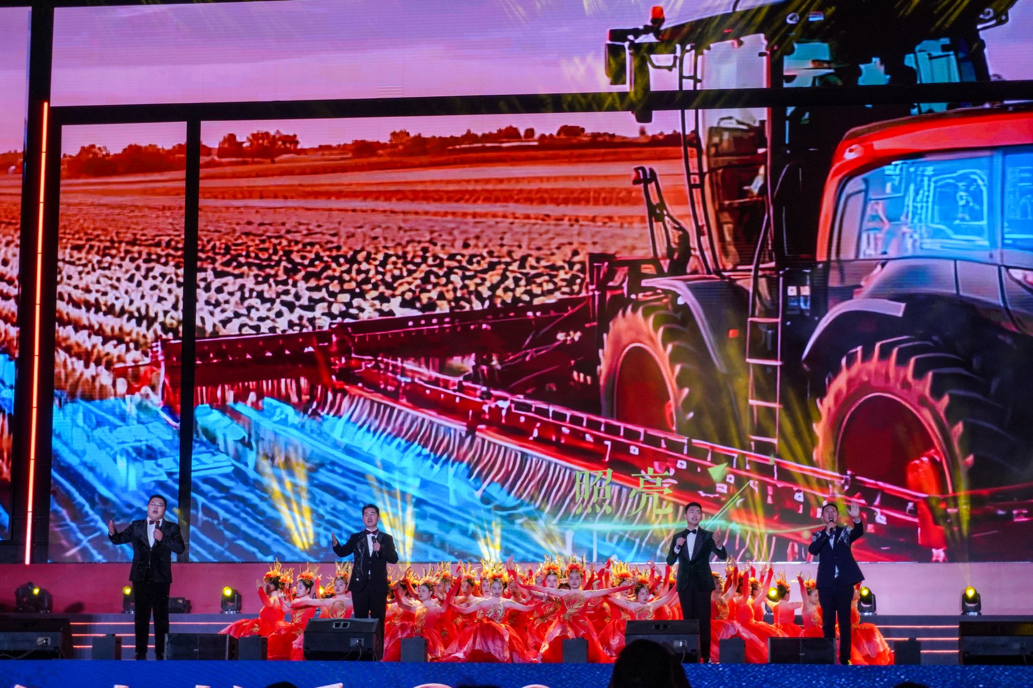 随着全场齐声高喊“5、4、3、2、1!”,倒计时结束,活动正式拉开帷幕,现场瞬间沸腾,部分观众与志愿者走向台前,围聚喝彩,共同欢庆江农百廿华诞这一熠熠生辉的历史时刻。大型歌舞《稼穑》以时代情景诗画为脉络、以中华千年农耕文明为底色,呈现了“农为邦本”的文明基因与“强农报国”的使命担当。