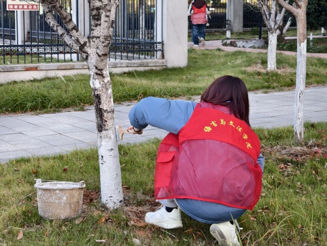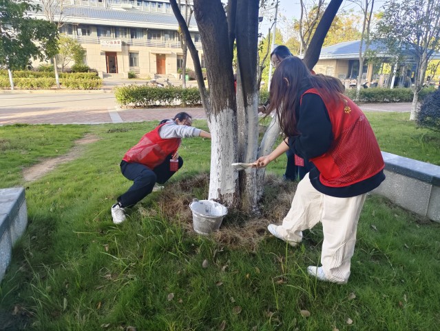 为培养新时代大学生劳动观,弘扬志愿服务精神,11月25日下午,语言与文法学院联合后勤保障处组织开展“刷树护绿,情暖校园”志愿服务活动,用实际行动为树木穿上温暖的“冬衣”。