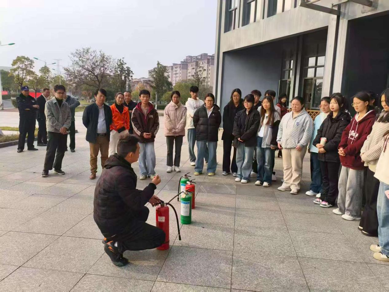 图书馆(档案馆)副馆长邱仕平作活动前动员讲话。他强调,图书馆作为重点防火单位,人员密集,消防安全责任重大,工作人员和入馆学生应汲取香港大埔火灾的惨痛教训,敲响安全警钟,掌握应急逃生技能。演练分为警示教育、专题培训与实战操作三个环节。警示教育环节,师生观看了香港大埔宏福苑火灾警示视频。