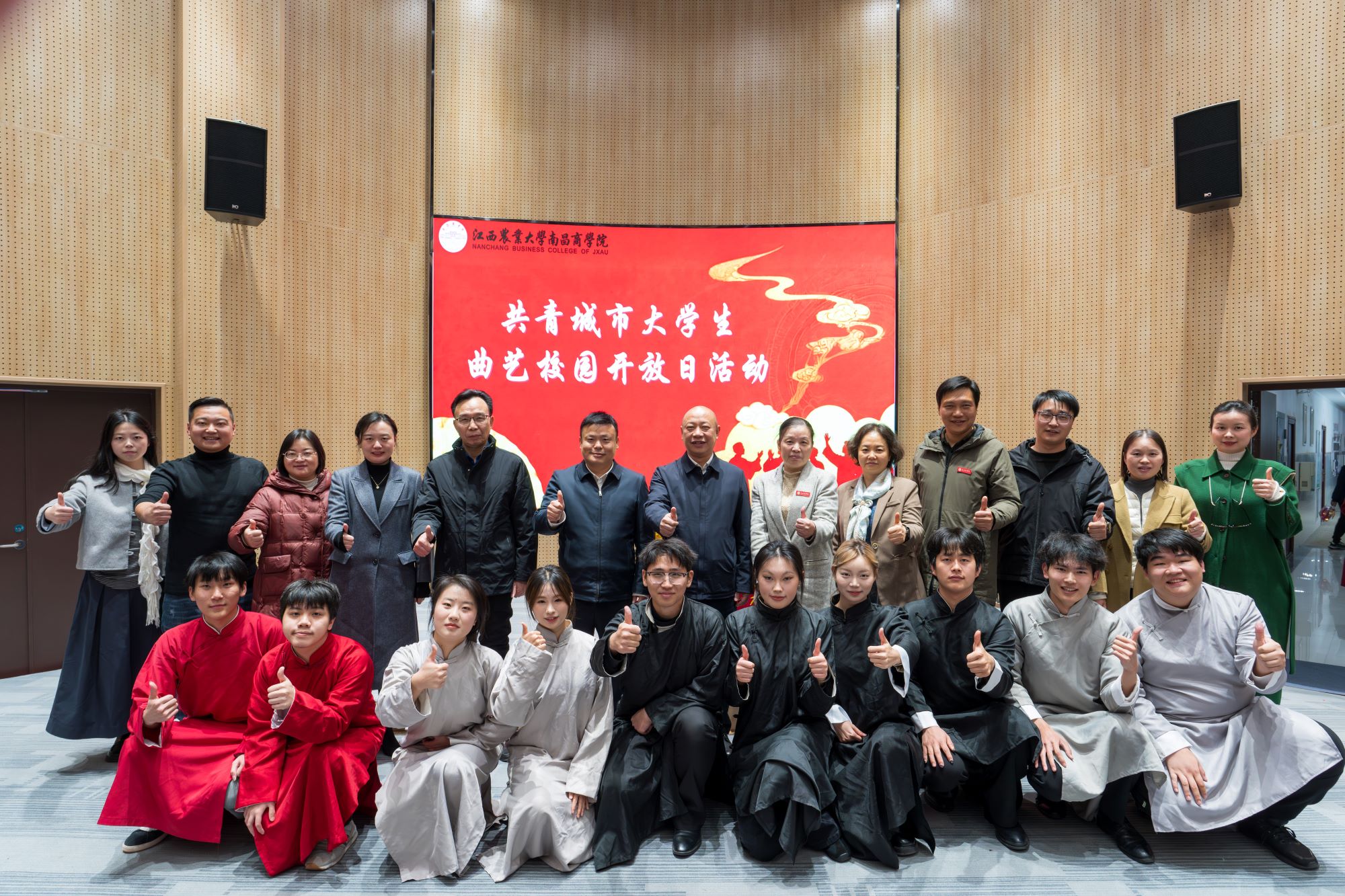 12月18日晚,学院在笃行楼小报告厅E117隆重举办聚欢曲艺社成立六周年暨曲艺小剧场落成庆祝演出。共青城市委常委、宣传部部长、统战部部长鄢俊彬,共青城市副市长刘伟、市委宣传部常务副部长查小兰,市文联主席刘俊亲临现场观看指导。院党委书记黎敏、院长胡国良、院党委副书记李海峰、副院长侯英梅与学院各部门、各二级学院的曲艺爱好者们齐聚一堂,共同见证这一喜庆时刻。