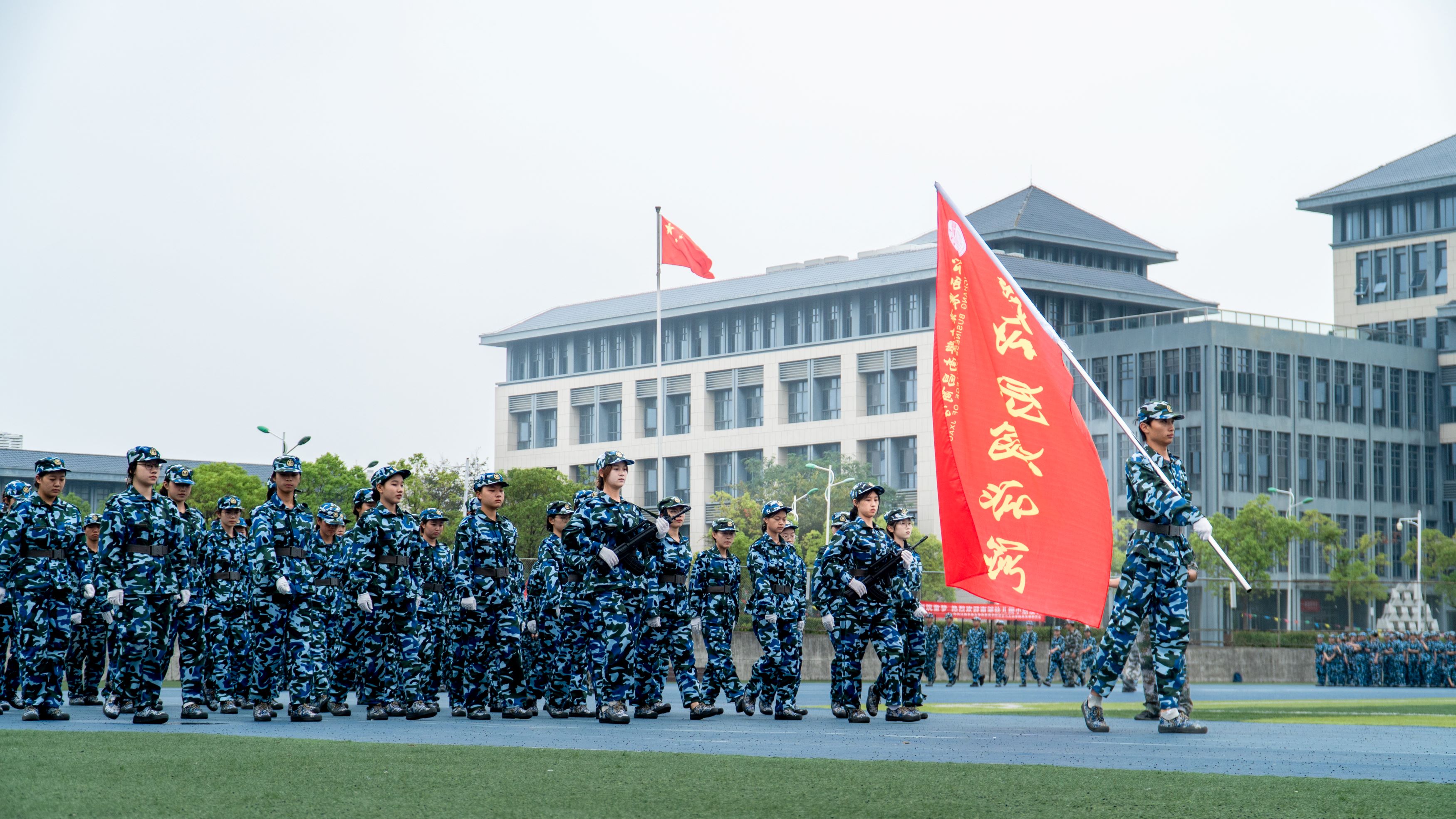随后,以数据科学与经济学院为首的六支新生方阵依次进行分列式表演,他们身着统一军训服,迈整齐正步、喊嘹亮口号,以挺拔军姿与标准动作展现两周军训成果,赢得现场阵阵掌声。