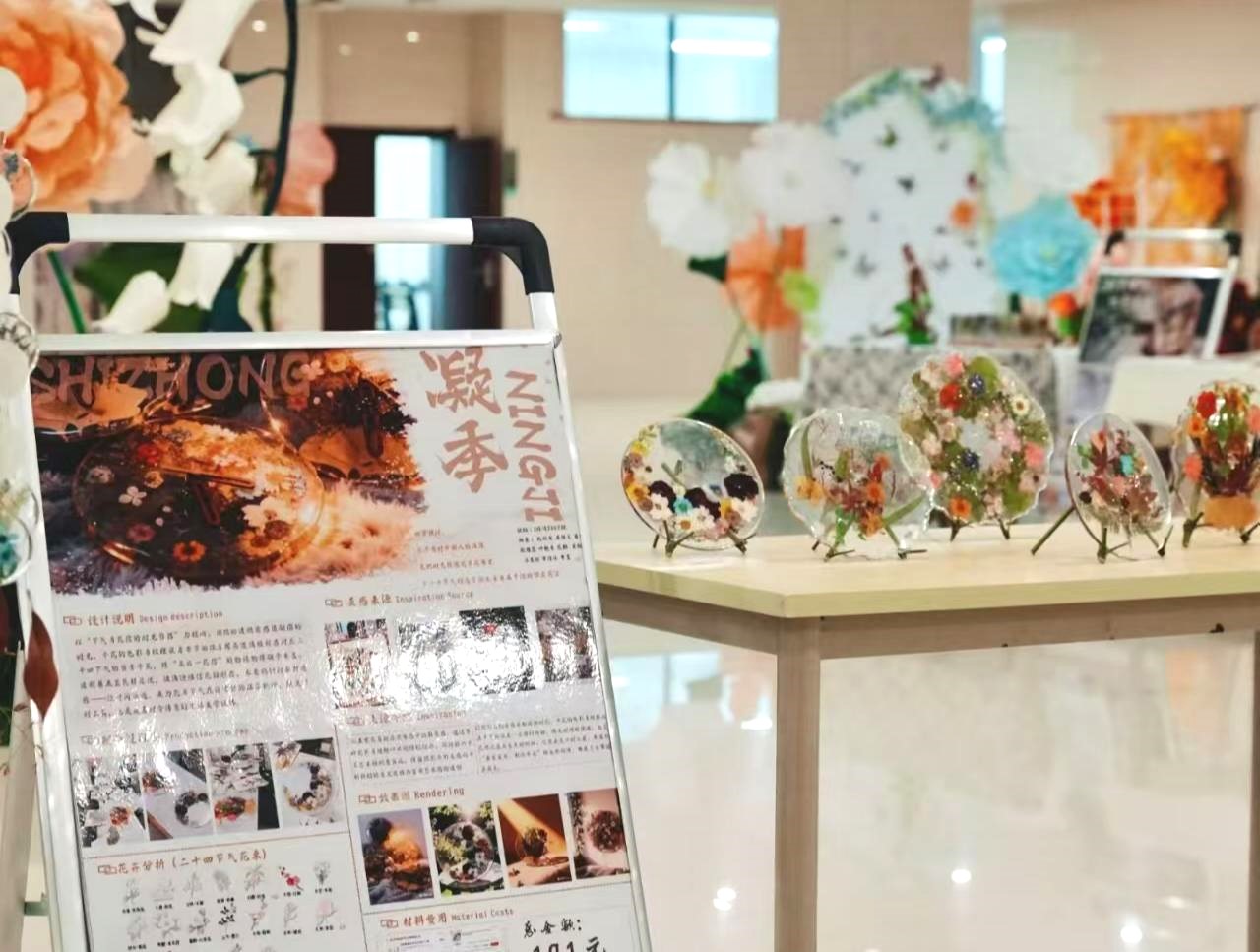 本次展览由环境设计专业团队共同创作,以二十四节气为主线,深度融汇传统物候美学与现代花艺设计,生动体现专业教学践行“以劳育人、以文化人”的育人理念,灵动巧妙的设计充分展现了师生们的匠心与才华。现场展出的节气风铃、主题花艺装置等作品,吸引众多师生驻足观赏。
