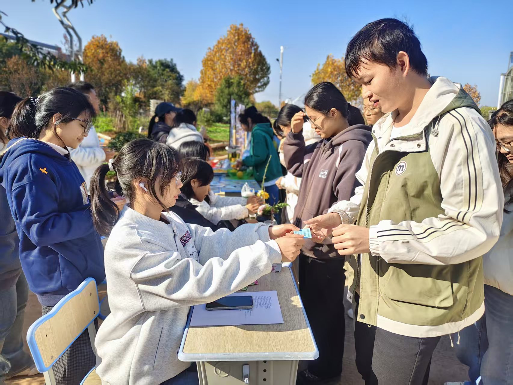 成果分享区是本次活动最受欢迎的现场,是名副其实的“实践成果展示台”。现场设置答题区与成果展示区,答题内容涵盖廉洁文化、植物科普等知识,学生们踊跃参与、积极作答,凭借扎实的知识储备赢取多肉植物、自制花茶、廉洁书签等“劳动成果”,现场氛围热烈非凡。展区内展示了荷塘景园基地自产的金丝皇菊花茶,工作人员现场为师生冲泡品尝,让师生在味蕾与心灵的双重体验中,深刻感受“劳动创造价值”的深刻内涵。