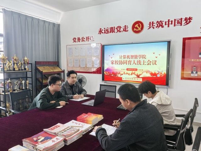 为落实立德树人根本任务,搭建家校高效沟通桥梁,精准护航毕业班学子平稳结业和顺利就业升学,3月13日下午,计算机智能学院在9-10栋党员活动室召开毕业班家校协同育人线上会议。会议由学工办主任余帆主持,学工老师与毕业班辅导员参会,与家长云端连线,共商育人举措、强化家校联动。