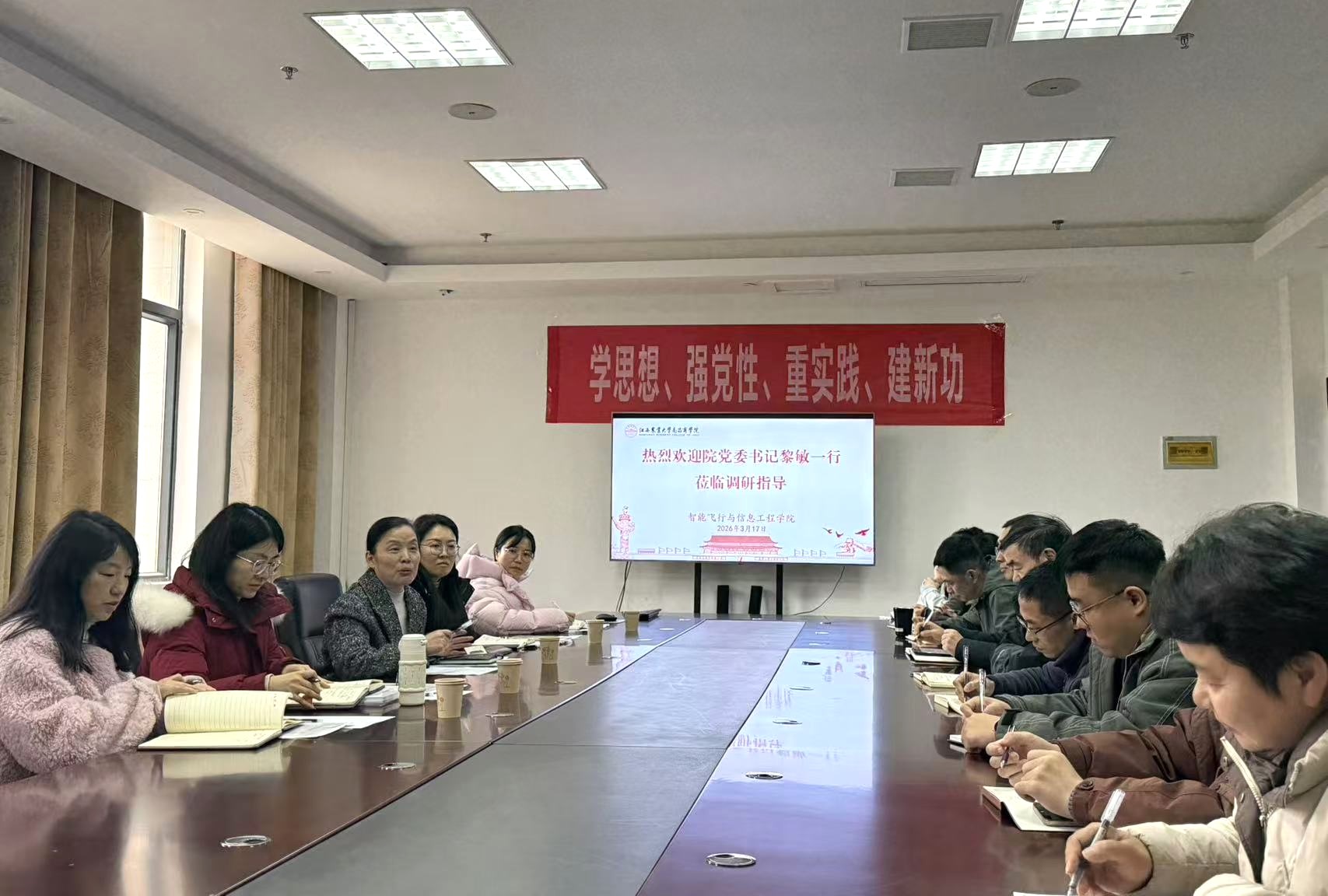 黎敏先后走访各二级学院、马克思主义学院、军体部等单位,与一线教师、管理人员面对面交流、实打实问需,充分了解广大党员干部、教师员工的思想动态、工作作风。她认真听取了各单位关于师资队伍建设、人才引育等方面的情况汇报,详细了解当前人事工作中存在的难点与堵点,并现场回应关切。针对各单位反映的问题和建议,黎敏要求相关部门认真梳理、逐项研究,做到“件件有着落、事事有回音”,拿出可操作、能落地的解决方案,推动学院工作更加科学化、规范化、人性化,让广大教职工有更多获得感、幸福感、安全感。