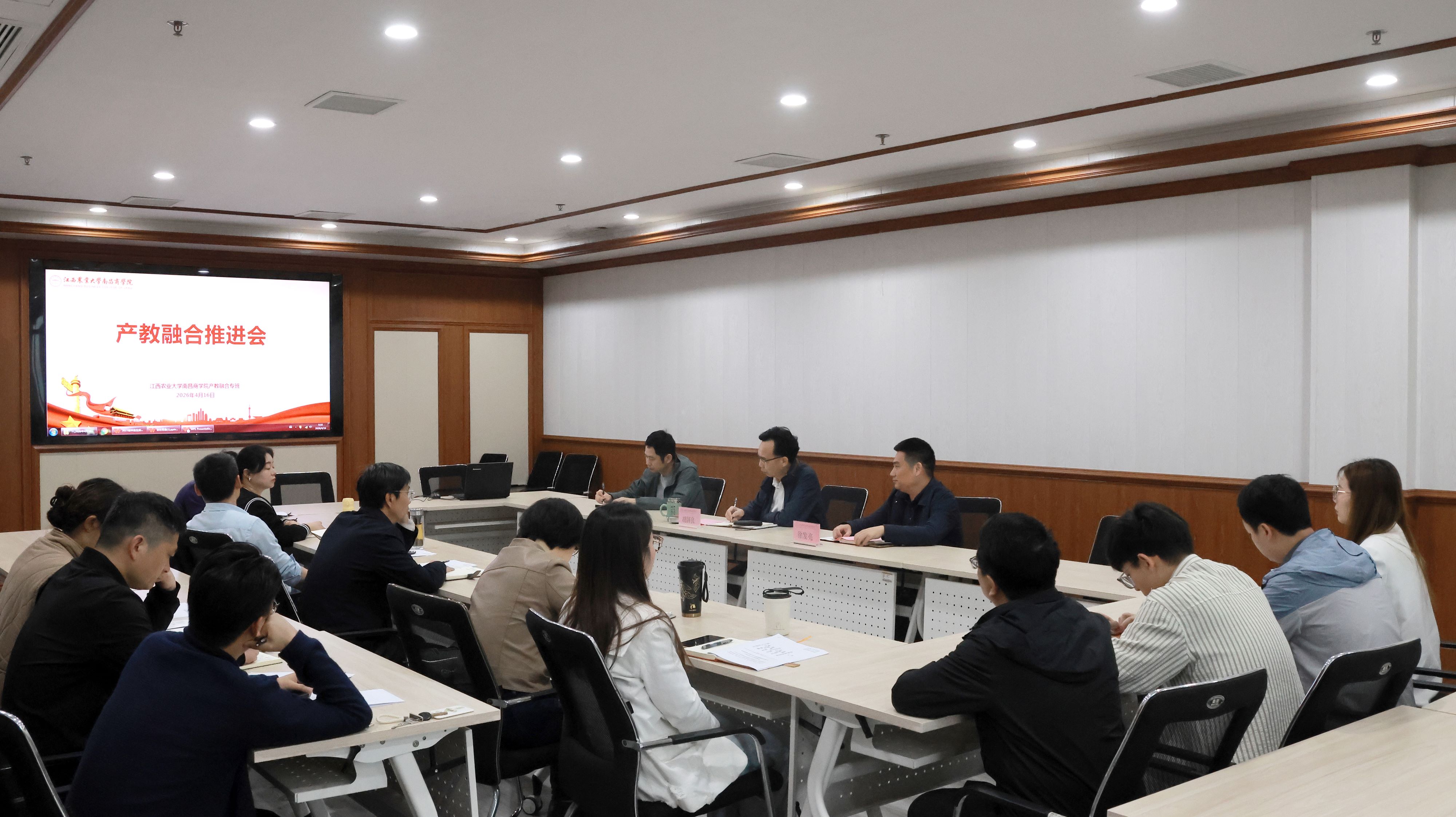 4月16日,学院在明道楼B203视频会议室召开2026年产教融合工作专题推进会。院长胡国良、副院长徐发亮,各二级学院、相关职能部门负责人参会。