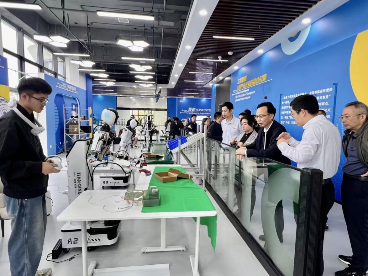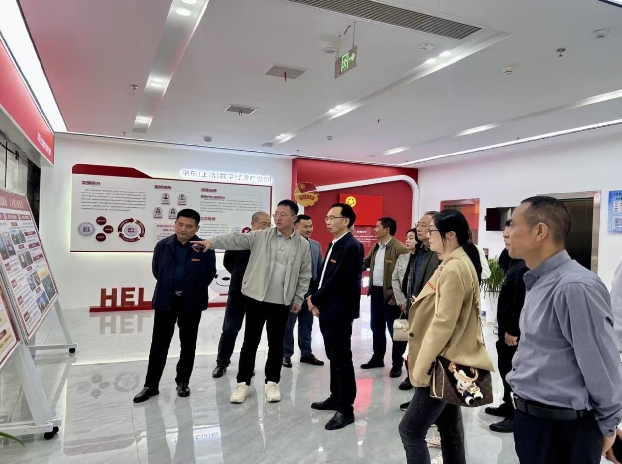 胡国良一行先后深入京东(上饶)数字经济产业园、江西元聚网络科技有限公司、上饶首展传媒有限公司、江西六角星科技有限公司、极智数据科技有限公司、上饶智慧数字经济科创孵化中心有限公司、上饶思睿万文化传媒有限公司等多家试验区具有代表性的科技型企业进行考察交流。在企业展厅、研发中心与实训基地,调研团队系统观摩了协作机器人、智慧物流、低空经济产业、AI人工智能赋能等一系列创新成果的现场演示,并就技术发展趋势、行业应用场景与商业化路径,与企业负责人进行深入交流。