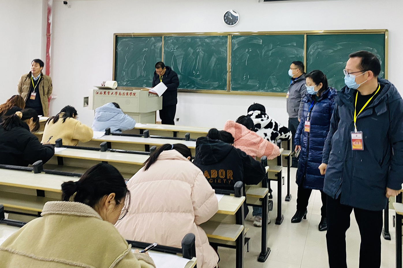 近日,学校2021-2022学年第一学期期末考试已全面展开,1月4日上午,院长何后军、党委书记郑志红带领全体在校院领导深入考场,巡视检查期末考试情况。