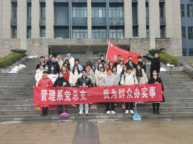 为了方便师生出行,减少意外的发生。2月23日,管理系组织开展清理积雪志愿服务活动。管理系入党积极分子、青年志愿者队和学生志愿者参加活动。